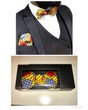 Bow tie + pocket square box set. Adjustable bow tie at the neck.