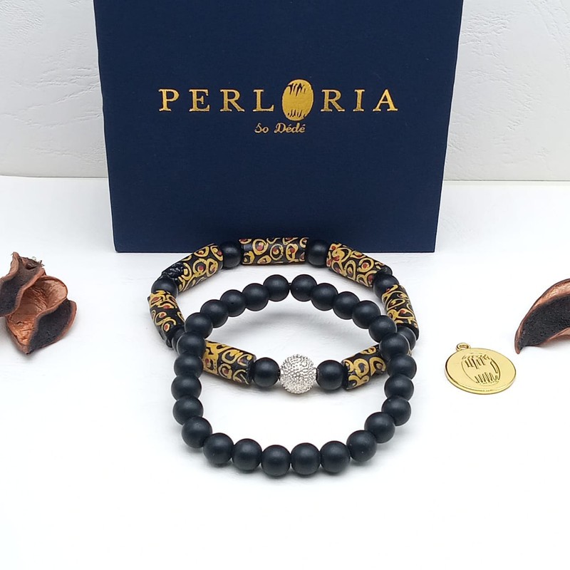 Bracelet homme en duo en perles anciennes et en perles onyx mate