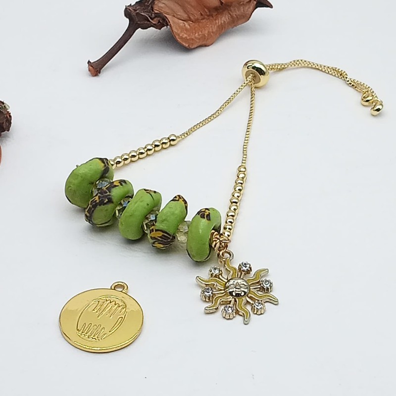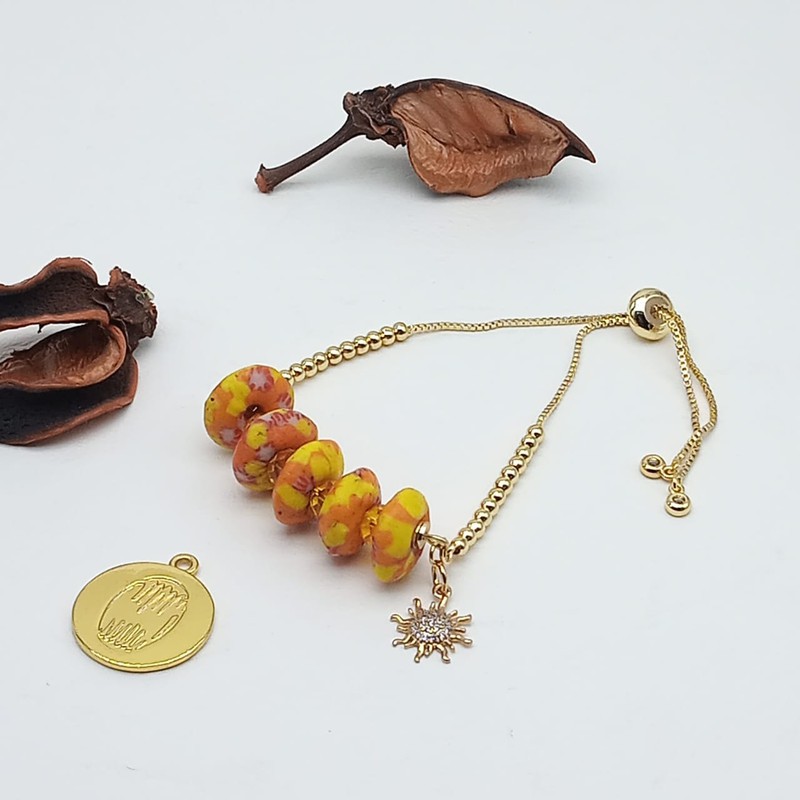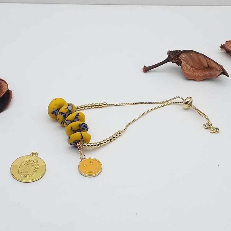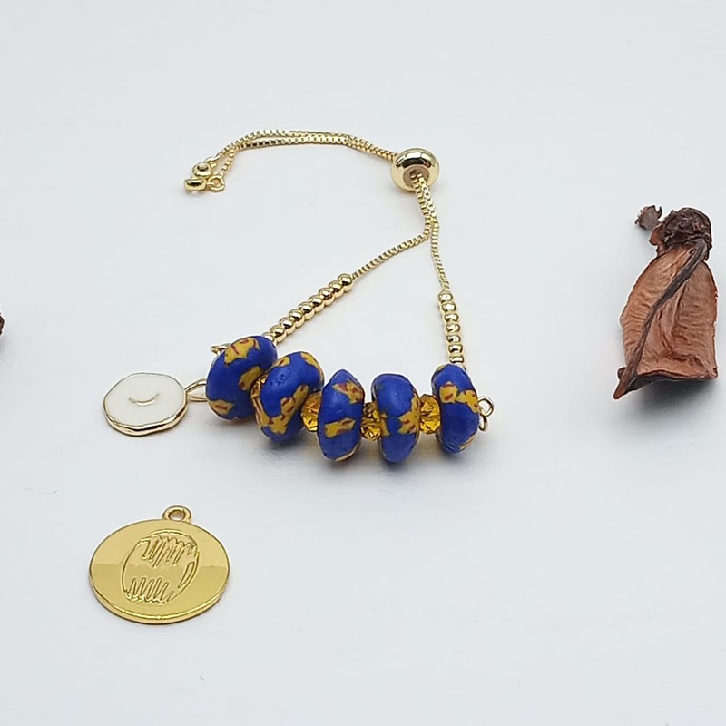 Bracelet en perles artisanales Krobo ajustable et d'une breloque. Disponible en différentes couleurs.