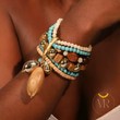 Ce bracelet multi-rangs s’inspire des parures traditionnelles africaines, où chaque perle raconte une histoire de connexion avec la nature et la communauté. Les perles turquoise symbolisent la vitalité et la protection, tandis que les perles en bois rappellent la force des racines et la stabilité.