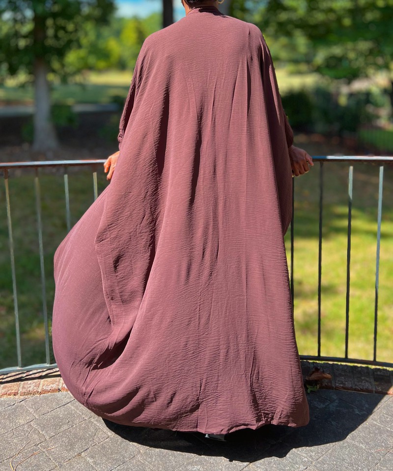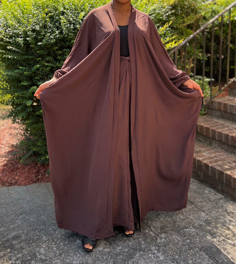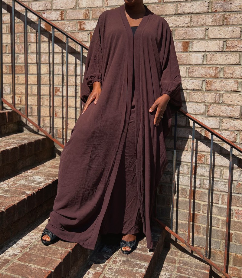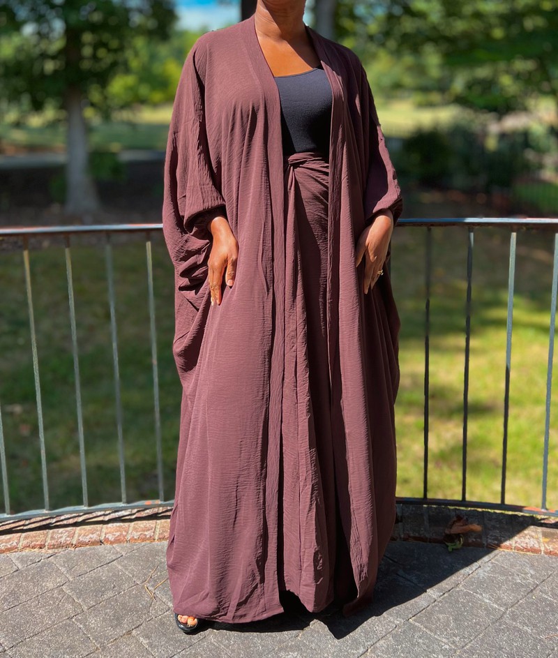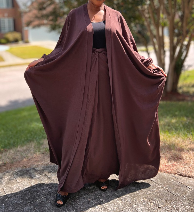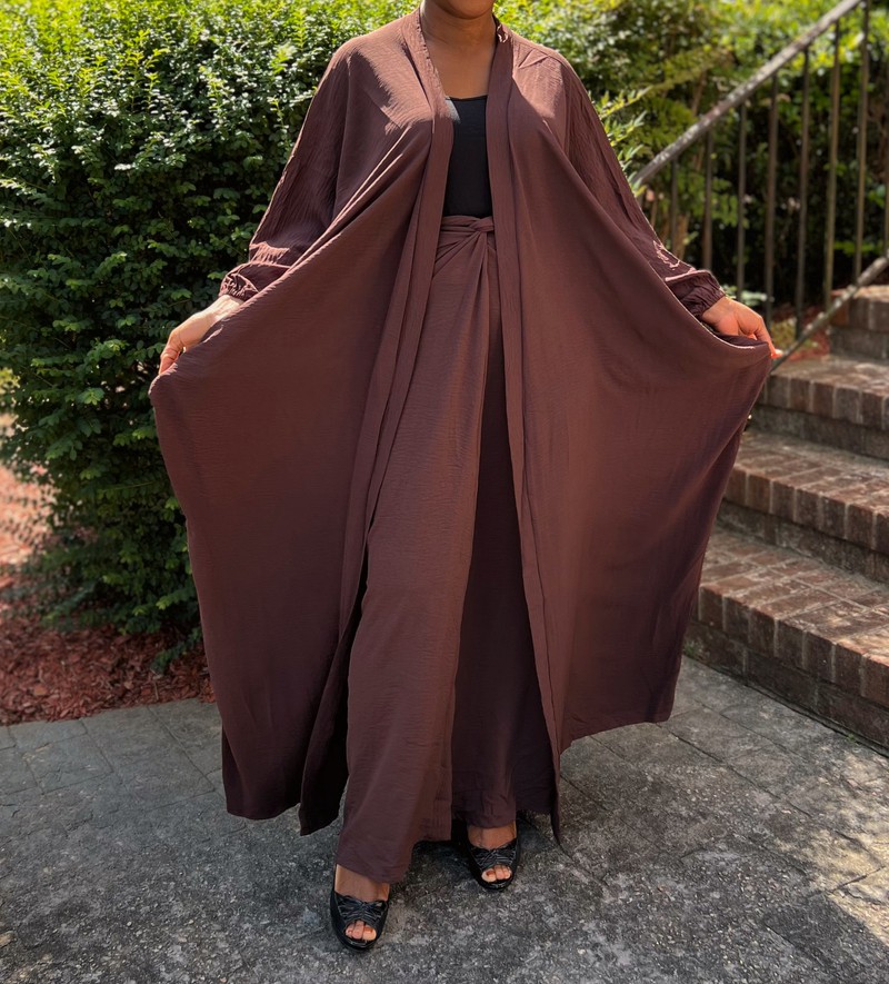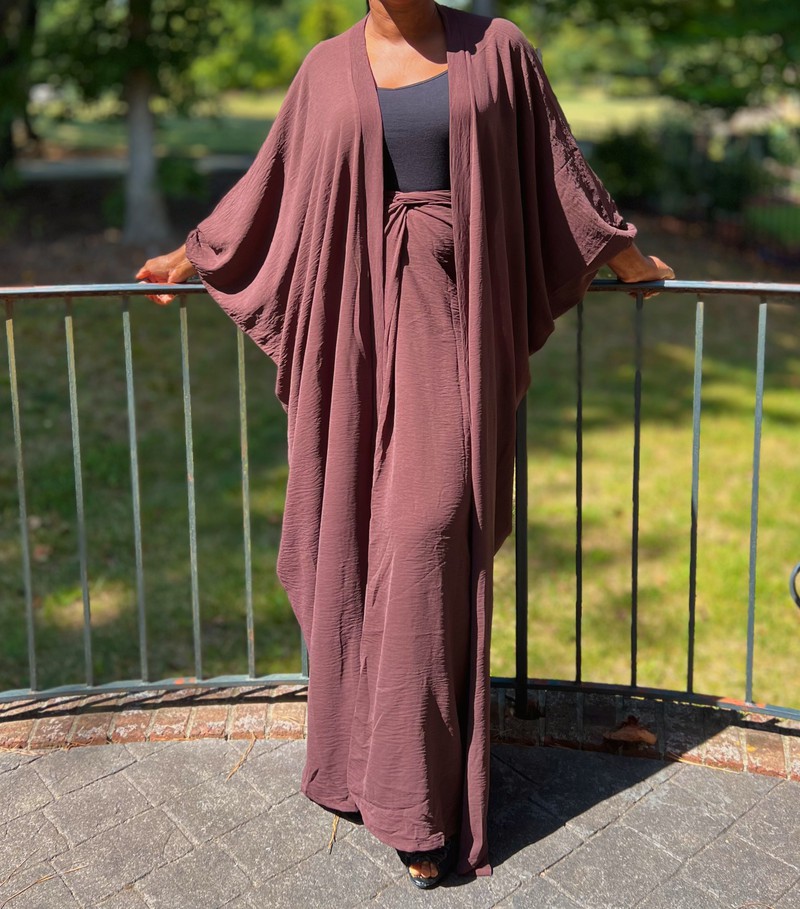 Brown Two Piece Oversized Crepe Maxi Cardigan Top and Wrap Skirt Set