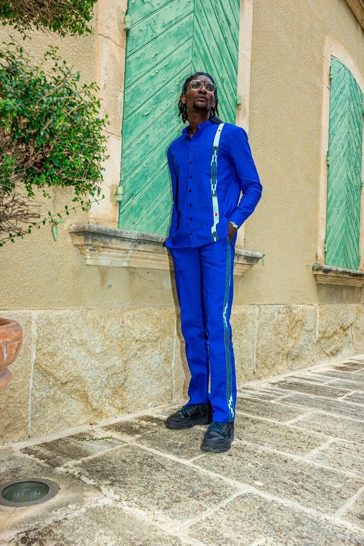 Ce modèle est décliné ici en Bleu Saphir, enrichi d’une touche de pagne Sénoufo de Côte d’Ivoire.