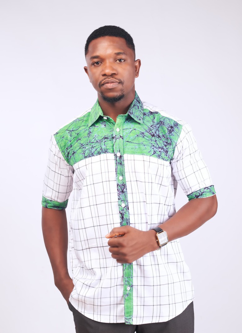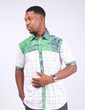 ⭐Chemise homme à manches courtes coupé dans un tissu coton et un tissu batik avec un col chemise et des boutons à l'avant ainsi que des poches au niveau de la poitrine.