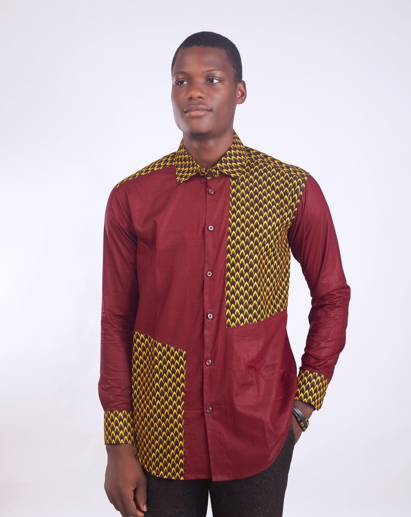 ⭐Chemise homme à manches longues coupées dans un tissu coton et un tissu wax avec un col chemise et des boutons à l'avant. ⭐ Disponible dans toutes les tailles et possibilité de personnaliser au goût. ⭐ Livraison rapide