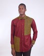 ⭐Chemise homme à manches longues coupée dans un tissu coton et un tissu wax avec un col chemise et des boutons à l'avant.