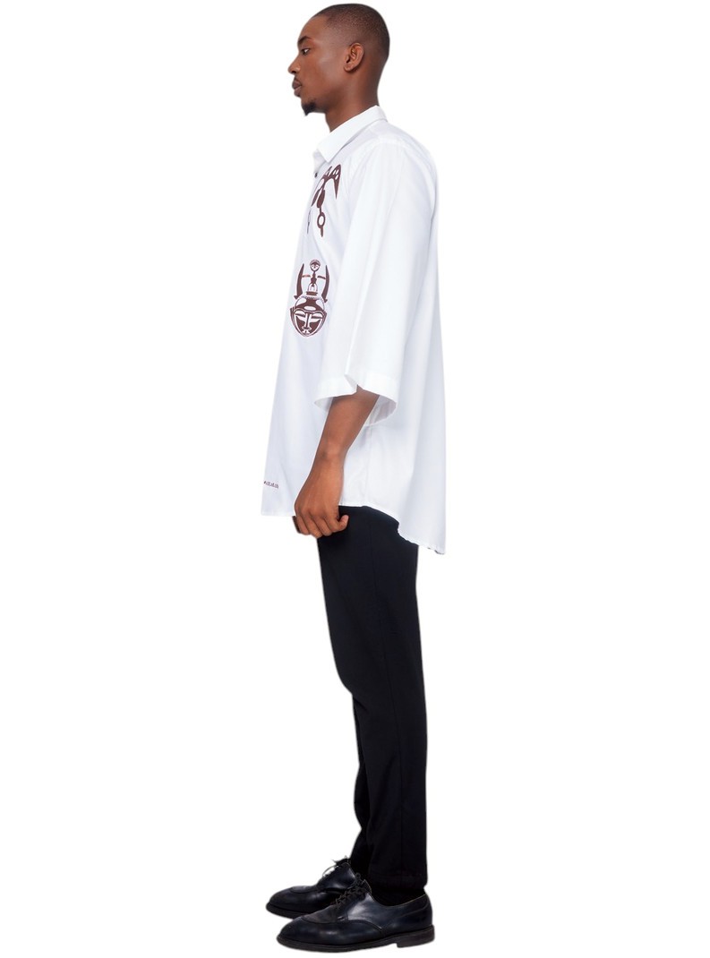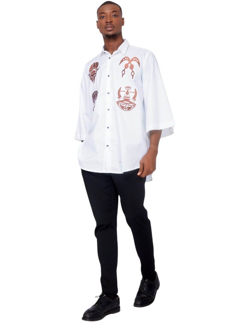 This magnificent shirt, adorned with symbolic patterns carefully embroidered by our talented local artisans, embodies the very essence of Africa.