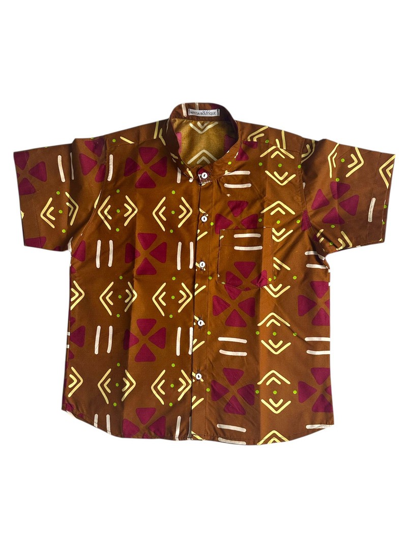 Apportez une touche de soleil et d’authenticité à la garde-robe de votre enfant avec notre chemise garçon en wax.