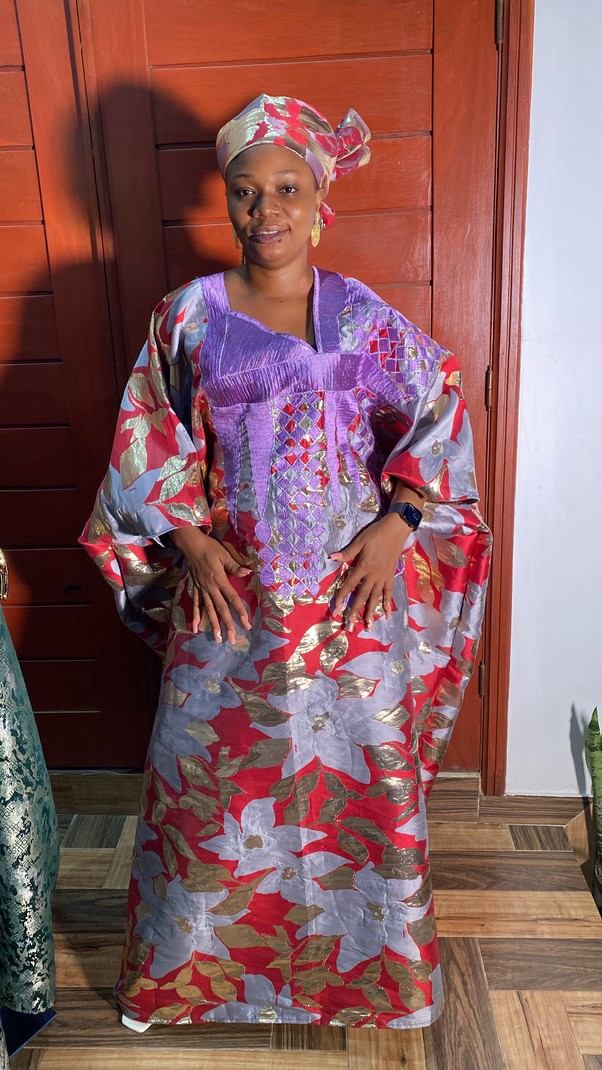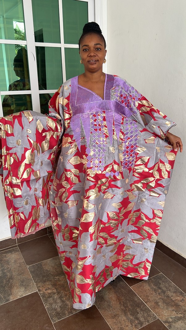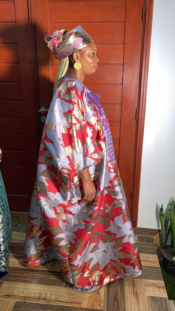 Très Beau boubou en tissu Brocart Fleury brodé avec une corde interne et un Foulard pour femme adapté à toutes les tailles et les occasions. Si vous souhaitez vous démarquer pendant les cérémonies et les sorties c’est fait pour vous.