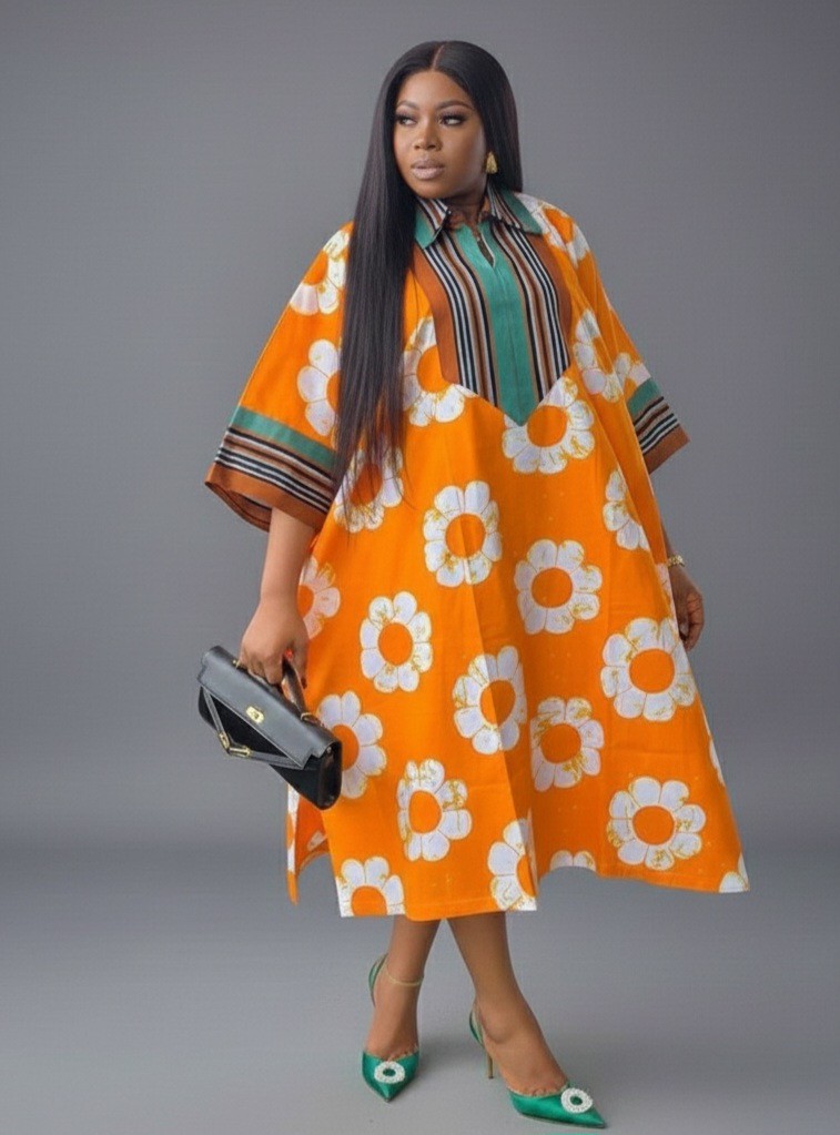 Chic Floral Print Kimono Dress in Vibrant Orange