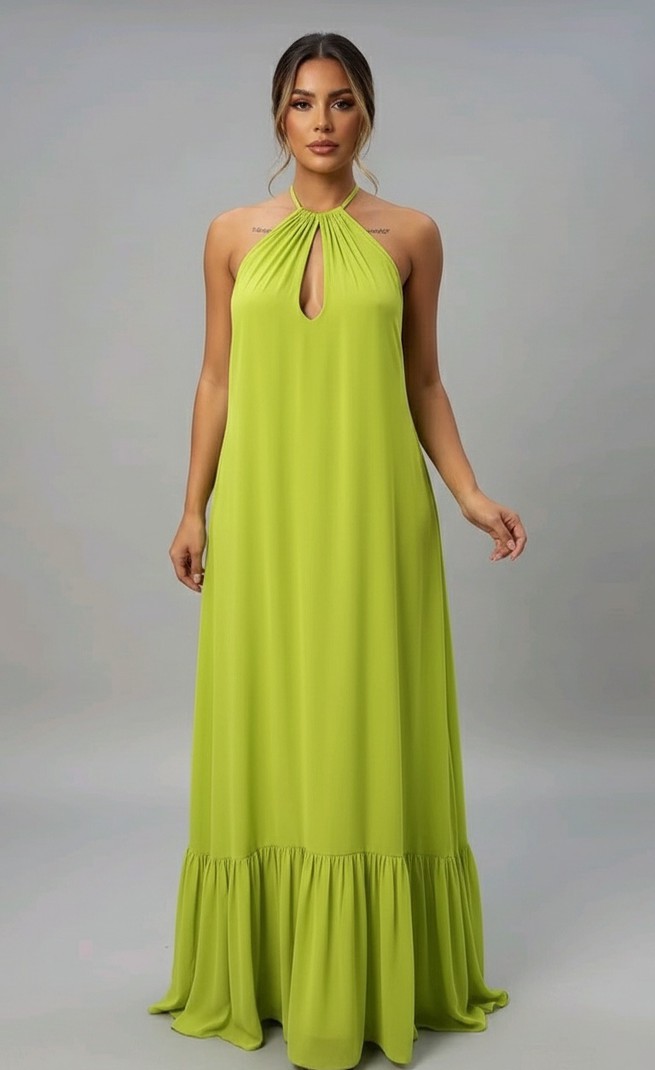 Elevate your summer wardrobe with this chic and vibrant lime green maxi dress!