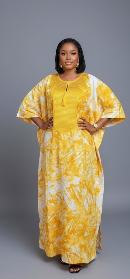 - Striking tie-dye pattern with vibrant yellow hues, perfect for sunny days