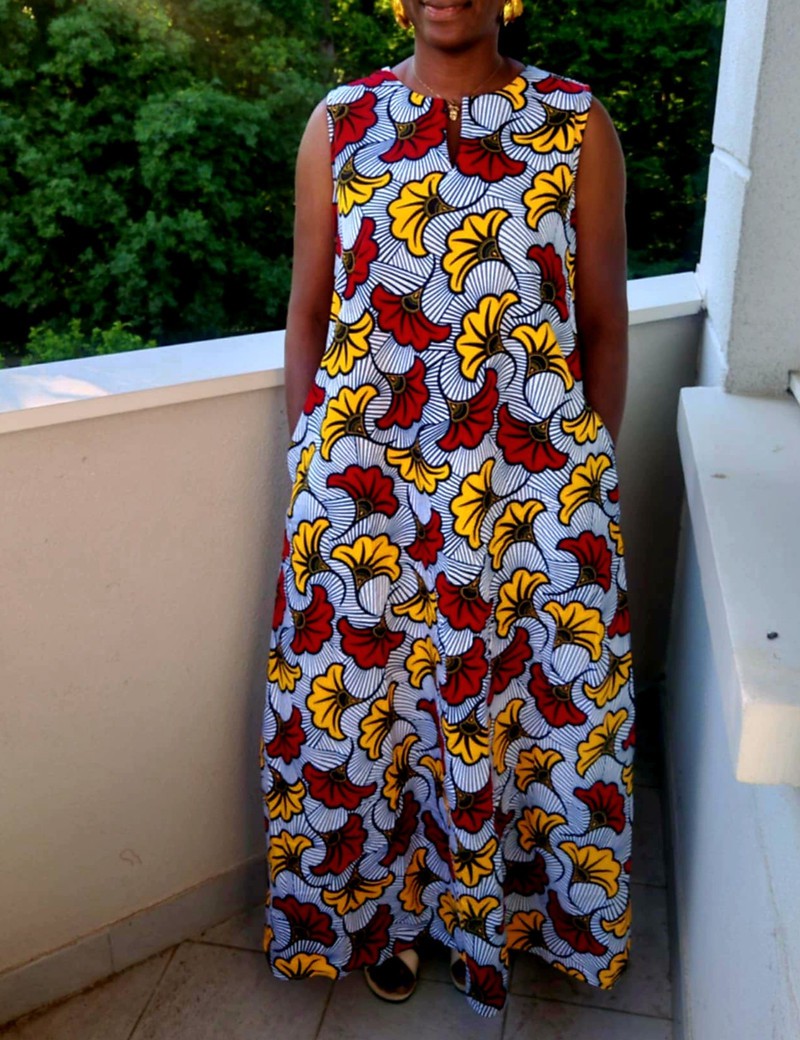 Longue robe wax Doublure à l'intérieur 2poches Longueur robe 130cm Taille mannequin 1m75
