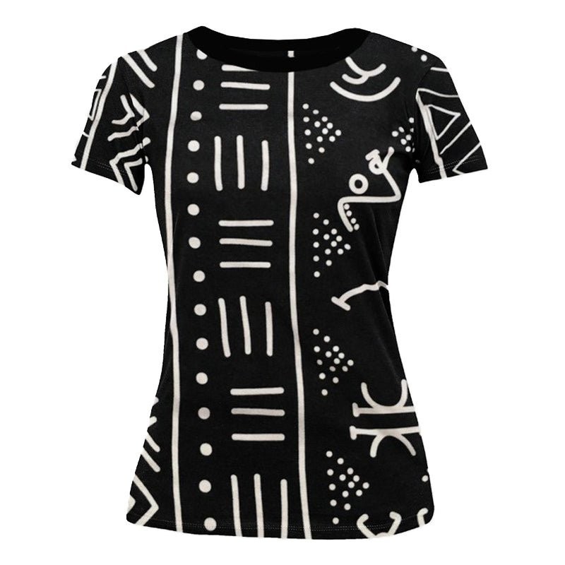 This Bogolan Print Women T-shirt is made from high-quality and sustainable fabric, perfect for any summer outfit. The African-inspired design showcases the natural beauty in the craftsmanship, making it a unique and eye-catching addition to your wardrobe. Product Features Please Compare your Measurements To our Size Chart This T-shirt is Designed for fashionable women. Made from 5.47 Oz. 100% polyester. Double-needle hemmed sleeves and bottom. Vivid print that will never fade after washing Soft, lightweight and quick drying. Delivery Time This item will be processed within 3-7 business days (Excluding Weekends and Holidays). Once products ships it can take up to 15 Business days depending on your location. Out of Stock items can be requested by emailing us at [email protected] Care Instructions Machine wash cold inside out. Gentle cycle with mild detergent and like colors. Do not use bleach or fabric softener. Do not tumble dry. Hang to dry to ensure maximum shelf life. Iron inside out if necessary. Do not iron the print. Do not dry clean.