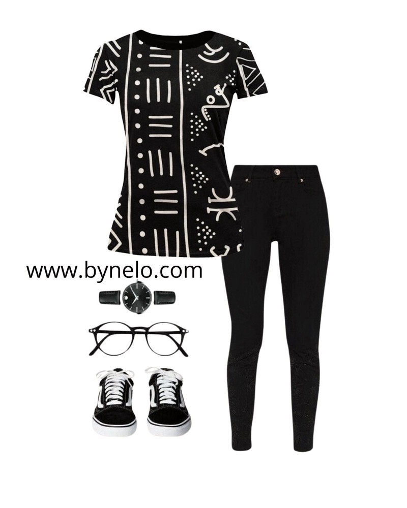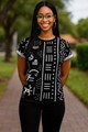 This Bogolan Print Women T-shirt is made from high-quality and sustainable fabric, perfect for any summer outfit. The African-inspired design showcases the natural beauty in the craftsmanship, making it a unique and eye-catching addition to your wardrobe.