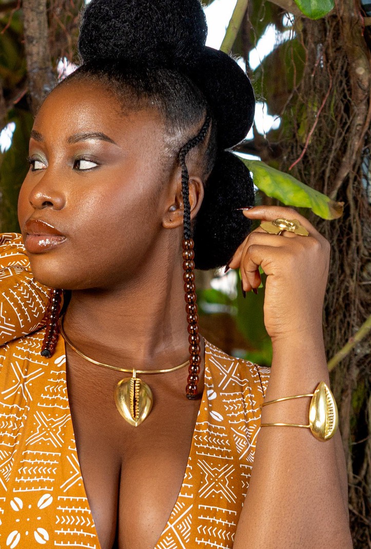 Sublimez votre allure avec ce collier cauris en bronze finement doré, entièrement façonné à la main en Côte d’Ivoire par des artisans talentueux. Chaque pièce est unique et rend hommage au savoir-faire africain, en mêlant tradition et modernité.
