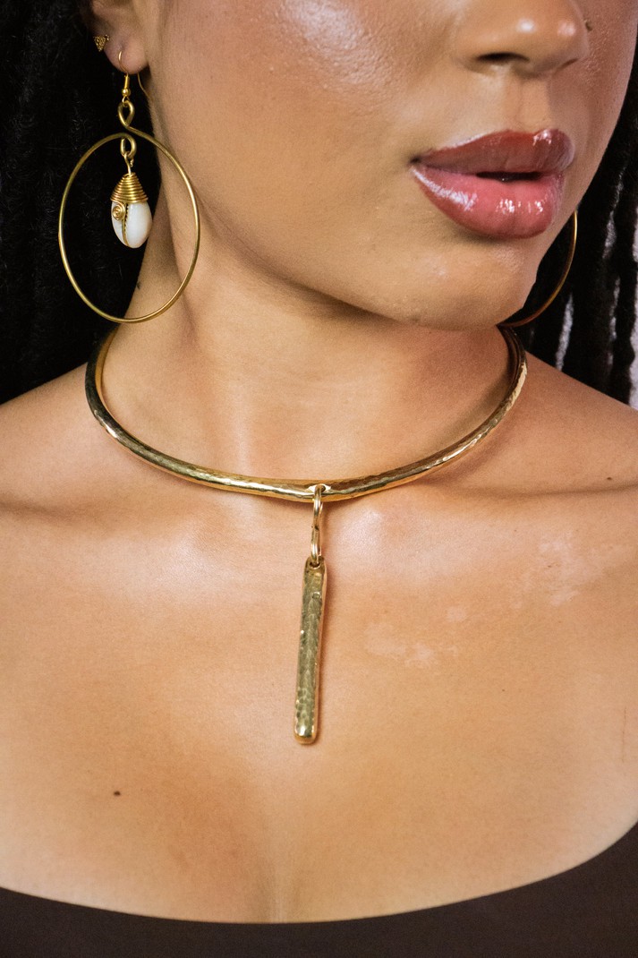Minimaliste, brut et puissant. Le collier Msingi célèbre la beauté de l’essentiel à travers un pendentif en forme de barre, forgé à la main par des artisans du Kenya. En bronze recyclé, il incarne la force, la stabilité et l’élégance naturelle. Un bijou qui traverse les tendances, pour les Queens qui aiment affirmer leur style avec simplicité et caractère.