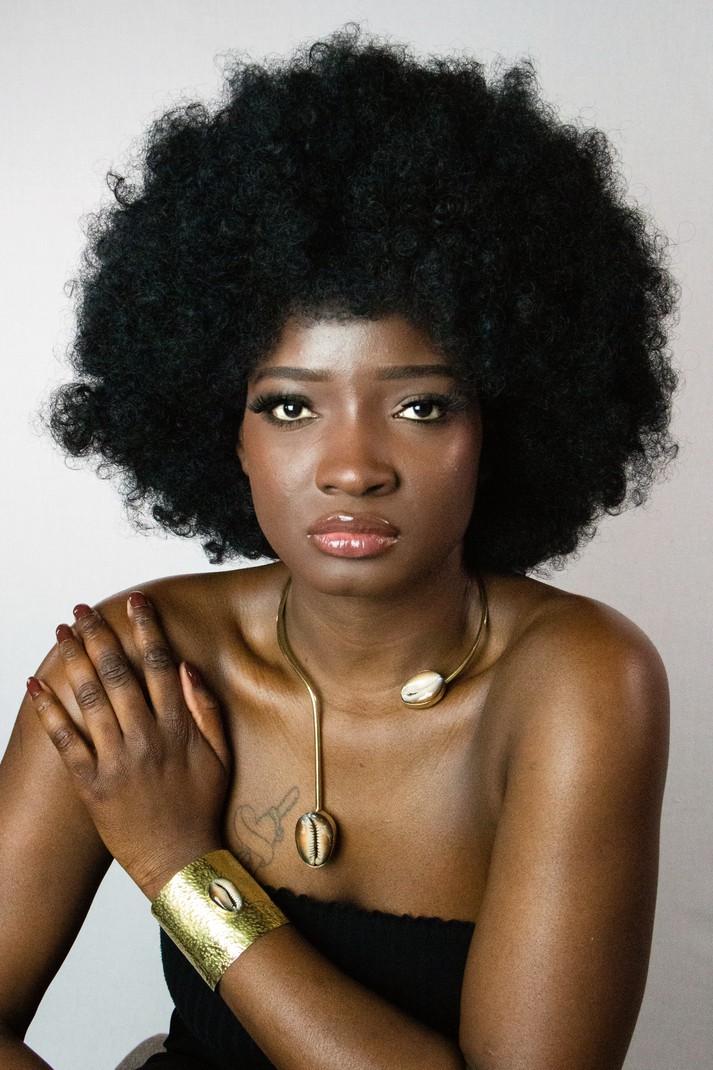 “J’ai créé ce collier pour celles qui veulent porter la terre comme une couronne. Le bronze et le cauri sont des symboles forts — d’abondance, de pouvoir féminin, et de mémoire. À ton cou, ce bijou devient un rappel que ta force vient de loin.”