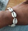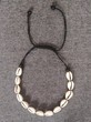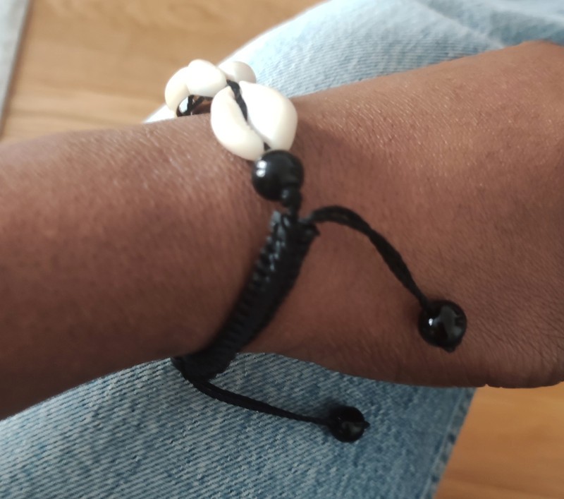 Ce collier et bracelet en cauris ou coquillages sont ajustables, ils sont montés sur fils noir