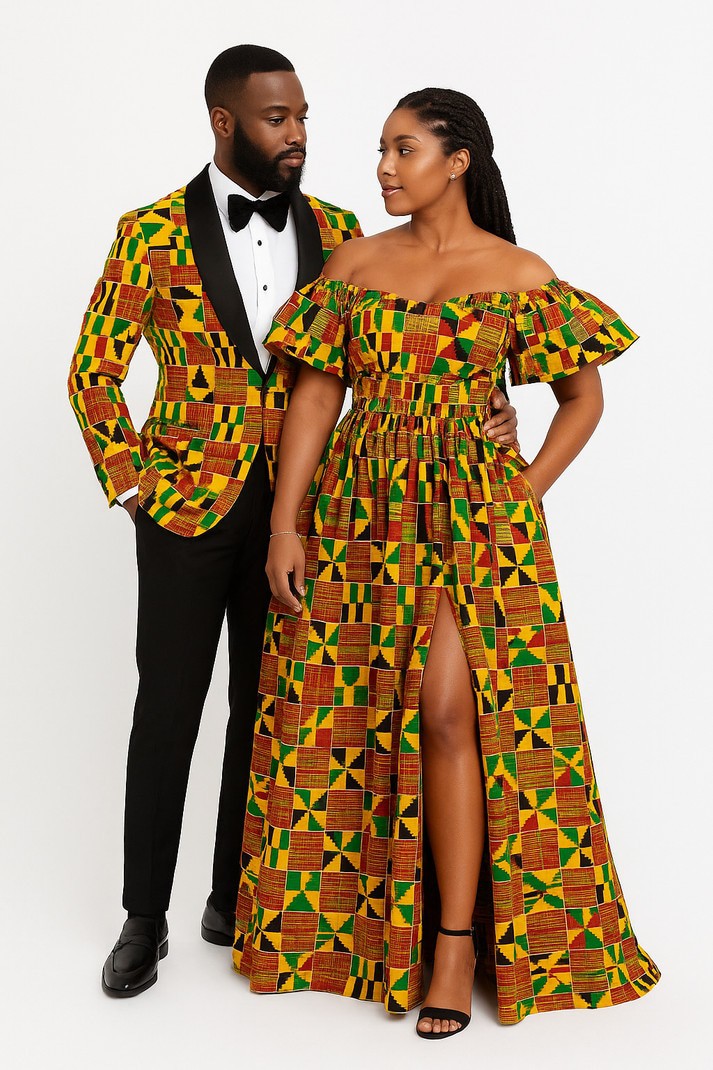 This dress is very well made with excellent craftsmanship down to every detail. The fabric is luxurious and the dress fits me perfectly!!! No adjustments needed. It is absolutely beautiful. It is quite spectacular! My partner’s outfit is lovely as well. I am so very pleased. You will not be disappointed.