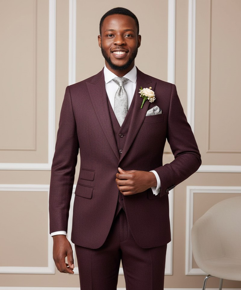Custom-Made Burgundy 3-Piece Suit – Bespoke Tailored Jacket, Vest & Trousers for Weddings, Business & Formal Events