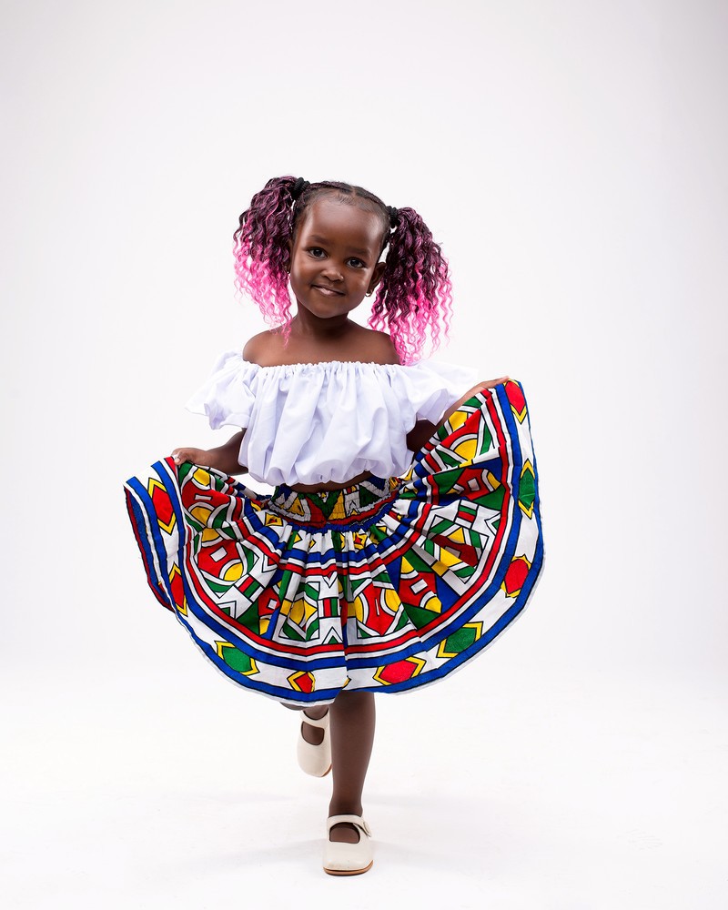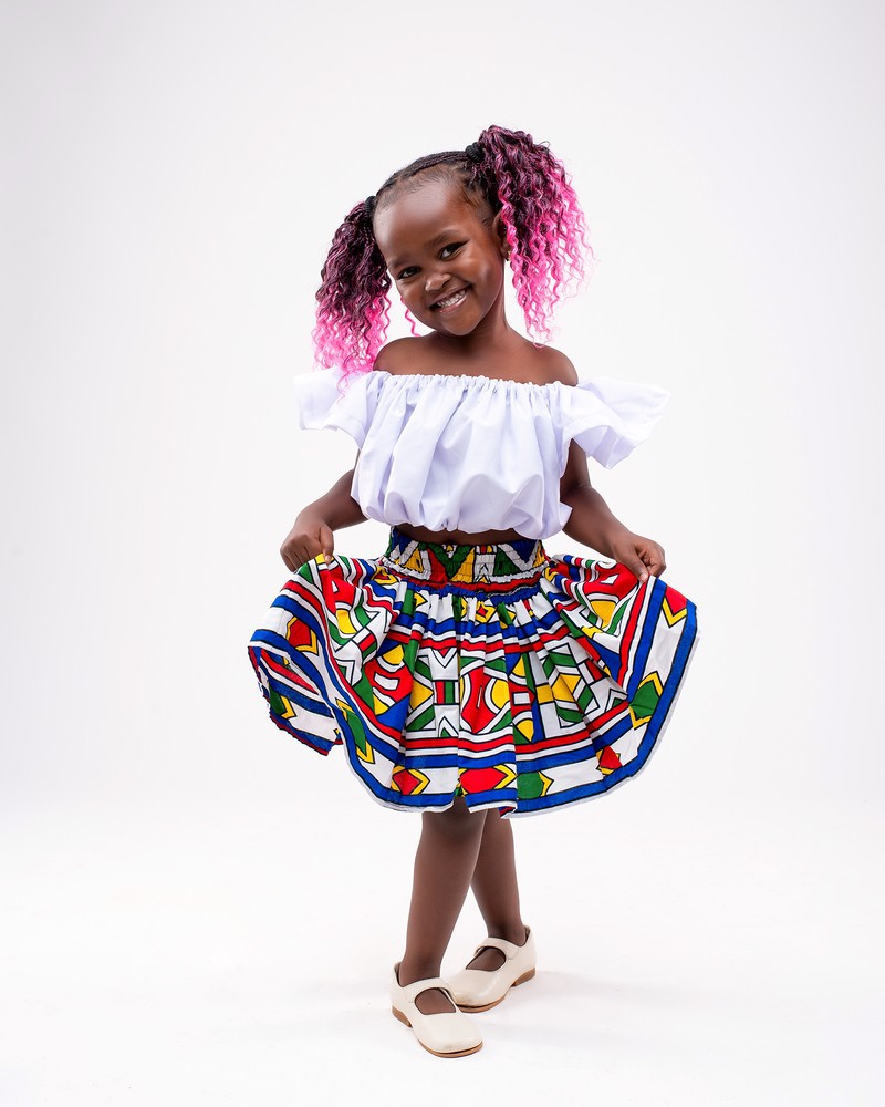 Off-shoulder top and mini babydoll skirt100% kente cotton