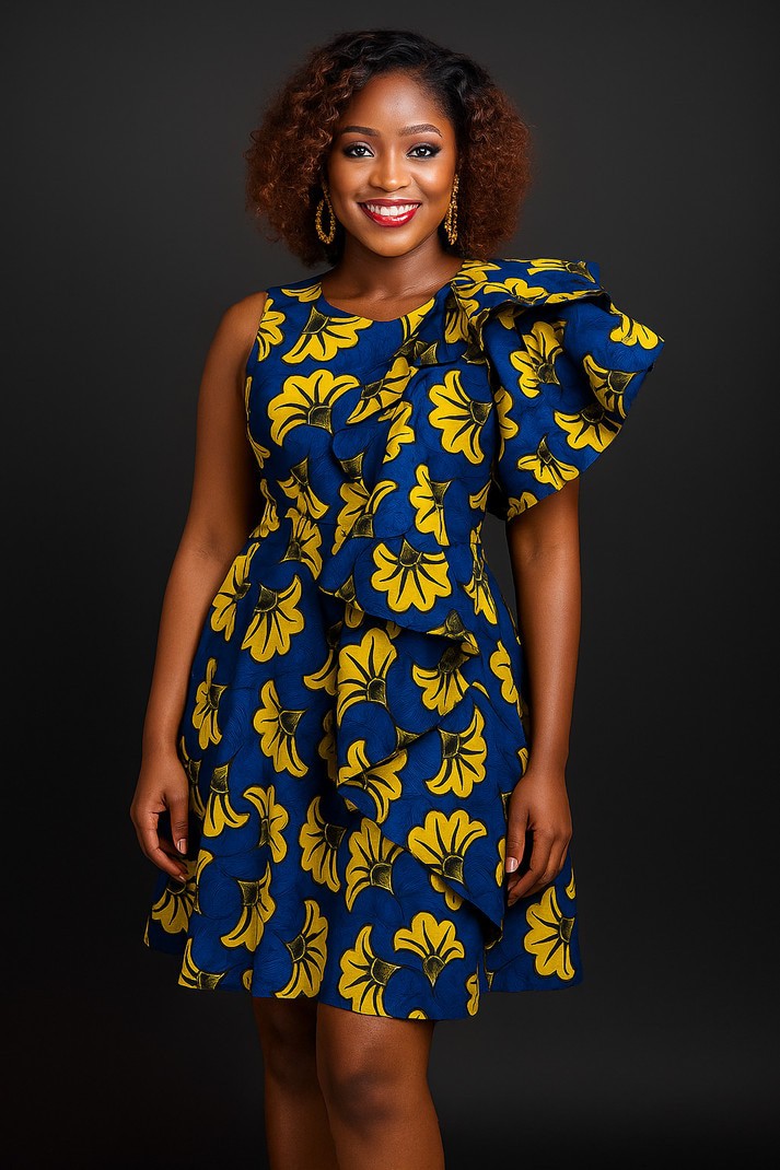 Women Dresses Mid-length Dresses Color: Blue Gender: For Her Material: Ankara