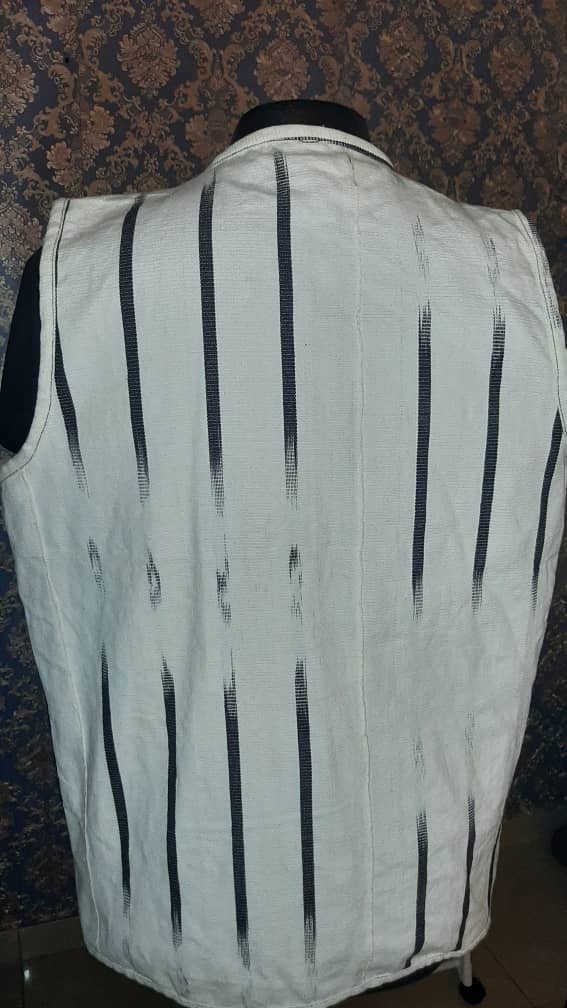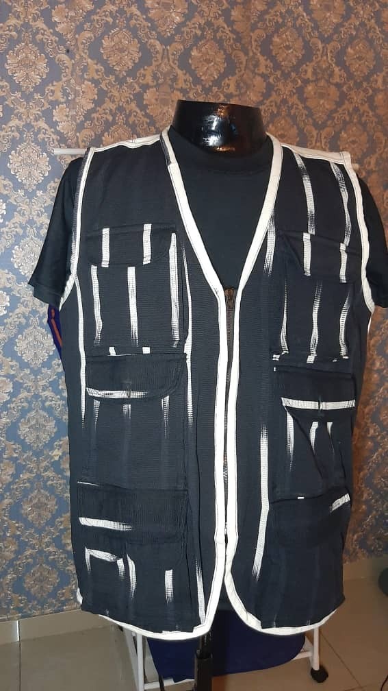 Men Waistcoats and Sweaters Vestes name_en: Black name_en: For Him name_en: Handwoven Cloth name_en: Kente