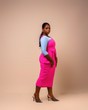 Women Dresses Mid-length Dresses Fit: Bodycon Fit: Straight Color: Pink Gender: For Her Material: Crepe