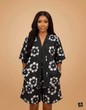 Embrace playful sophistication with this charming two-piece shorts co-ord set, featuring a bold black and white floral print. The set includes a pair of comfortable high-waisted shorts and a coordinating open-front, kimono-style top with short, wide sleeves. The fabric is crafted from a structured yet breathable ankara, offering comfort and holding the relaxed shape of the garments beautifully. The striking, large-scale white floral pattern contrasts perfectly with the deep black background, making a strong visual impact. This stylish and versatile set is ideal for warm-weather occasions such as casual summer parties, daytime events, tropical vacations, or as an effortlessly chic ensemble for weekend outings and resort holidays.