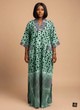 This graceful Buba-style kaftan is a masterclass in modern artisanal luxury, meticulously crafted from premium hand-dyed Adire cotton that features a striking "XO" motif in vibrant green and deep charcoal. The garment showcases a sophisticated interplay of patterns, transitioning from the bold symbolic print on the body to a sharp, monochrome striped border along the hem, sleeves, and architectural V-neckline. Designed with a generous, floor-length silhouette and traditional wide sleeves, this piece offers a perfect balance of breathable comfort and regal presence, making it an ideal choice for high-profile cultural events, elegant garden parties, luxury lounging, or sophisticated evening receptions where you want to radiate effortless confidence and heritage-inspired style.