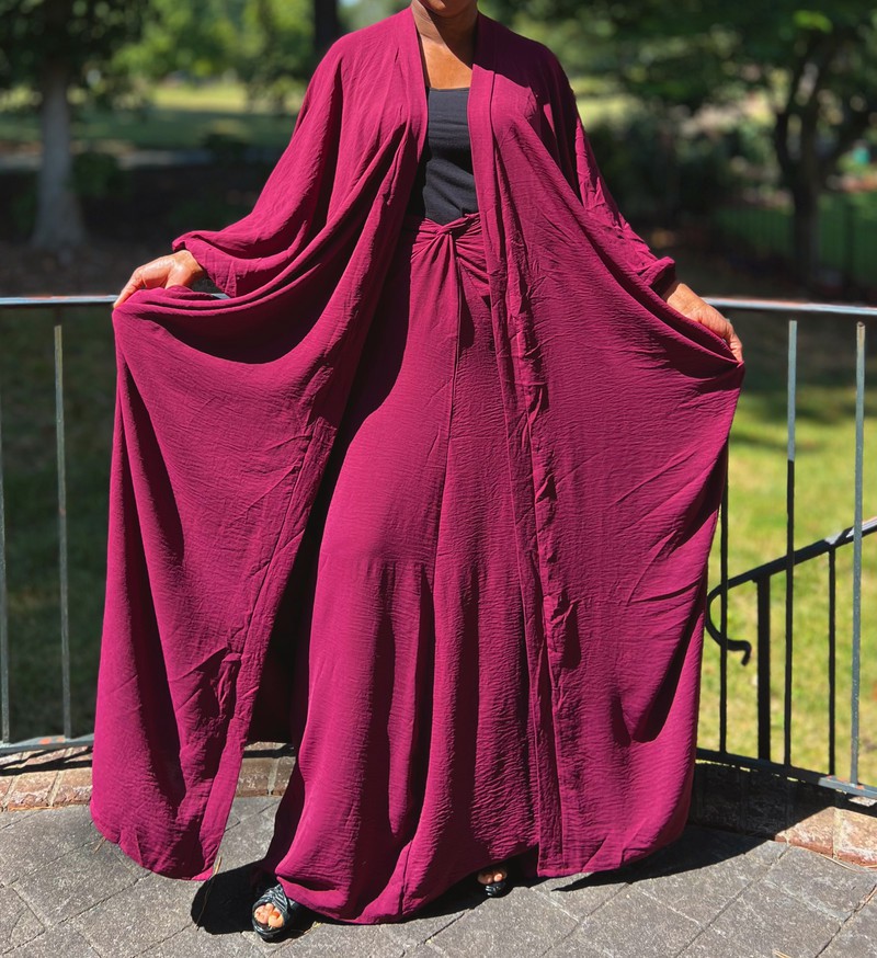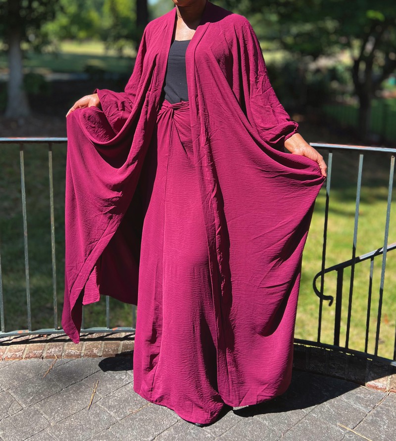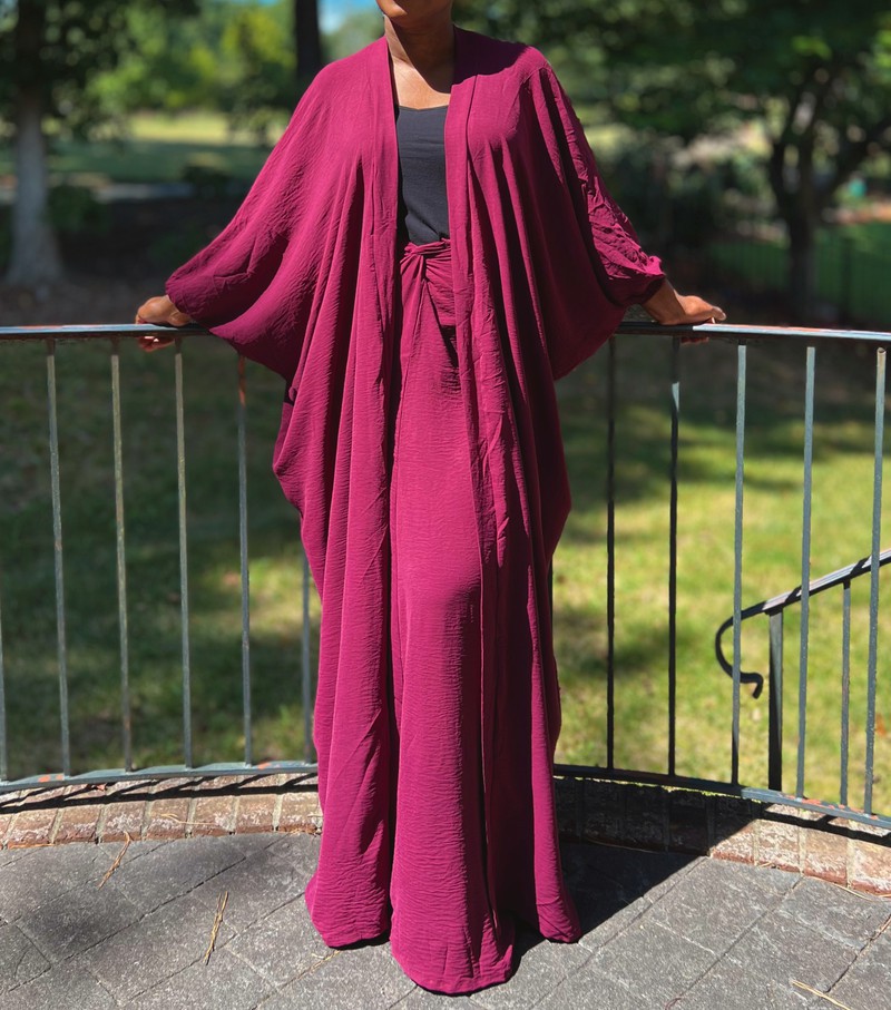 Deep Magenta Two Piece Oversized Crepe Maxi Cardigan Top and Wrap Skirt Set