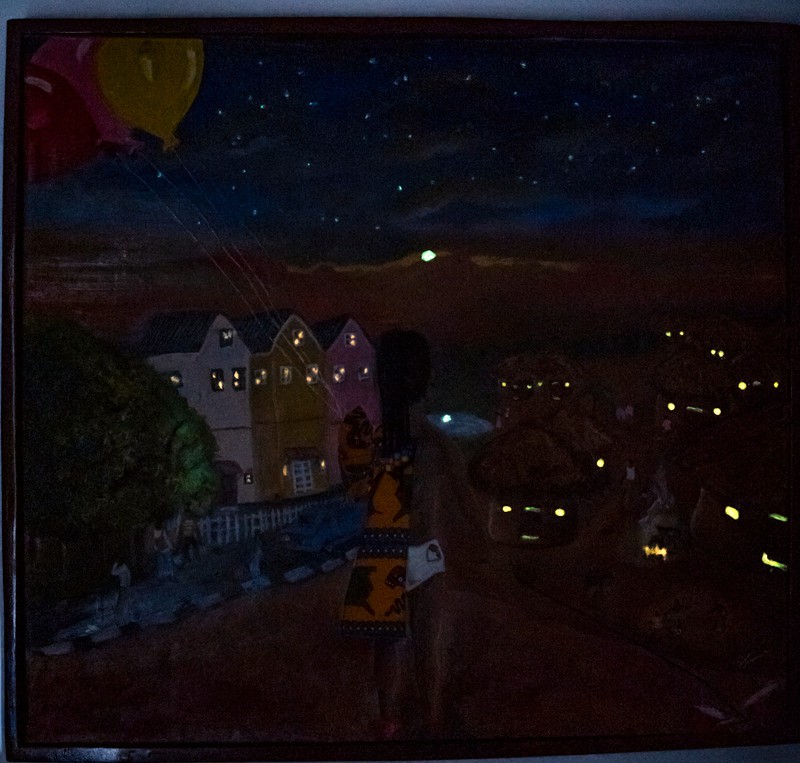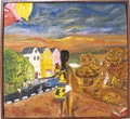 In this masterpiece, a young girl stands at a profound crossroads, gazing at two worlds that stretch before her. On her right, a village with thatched huts and children playing under the warm, earthy hues of dusk. There is a simplicity here, a connection to tradition and community, but also a life limited by circumstance. To her left, the colours brighten, revealing a bustling modern town, with pastel houses, paved roads, and the allure of opportunity floating above her head like balloons.