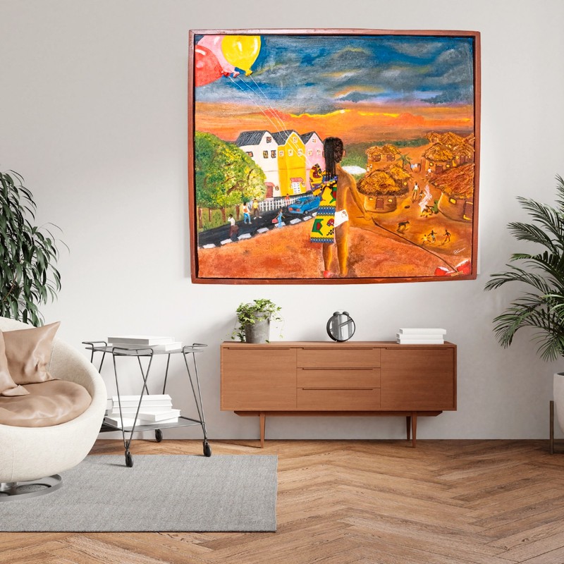 The scene captures a universal story—the longing for progress without losing oneself, the courage to forge a new path while carrying the echoes of the past. Every brushstroke speaks of choices, sacrifice, and the resilience of the human spirit. *Destiny Intersection* isn’t just a painting; it’s a call to recognize our own crossroads, to reflect on where we come from, and to imagine where we might go. Collectors who bring this piece into their lives bring with it a reminder of the beauty, complexity, and strength found at the intersections of identity and ambition