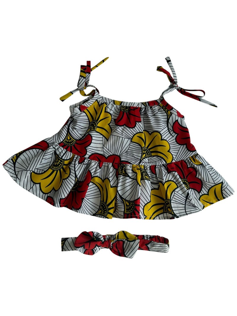 Un ensemble adorable et confortable, parfait pour les beaux jours. La robe à bretelles nouées s’ajuste parfaitement et s’accompagne d’un bandeau assorti pour un look 100% stylé et coloré!