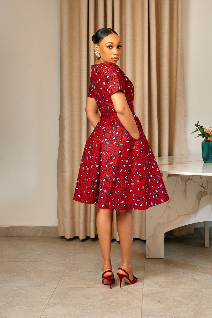 The Duni African print midi dress is a stunning and vibrant piece that will make you stand out in any crowd. This flare dress features a beautiful African print design that is perfect for any special occasion or event. The dress also comes with convenient side pockets for added functionality and style.