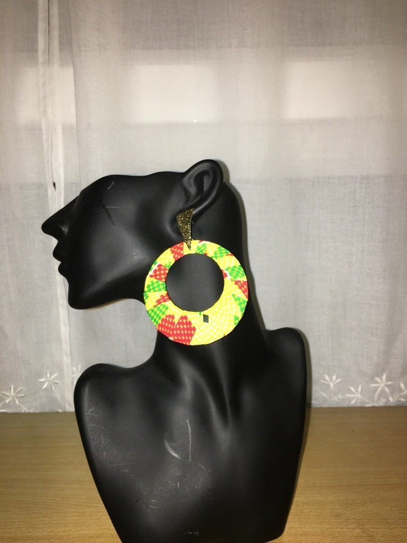 Ces boucles d'oreilles sont faites avec du tissu africain .