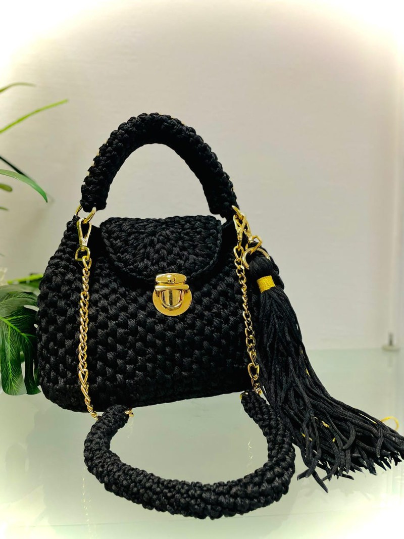 Design: The bag has a gold chain strap, adding a touch of elegance and a large tassel fashionable detailed