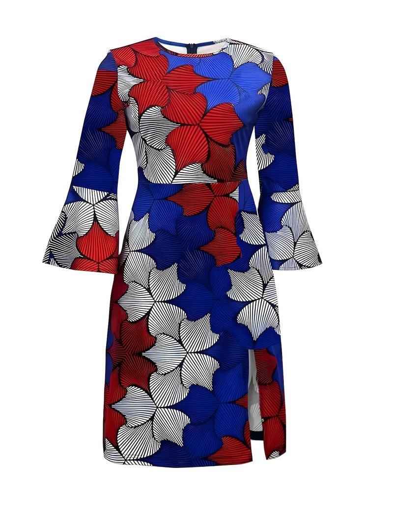 Elegant Geometric Print Long Sleeve Bodycon Dress