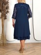 Elegant Plus Size Embroidered Chiffon Midi Dress - Blue, Half Sleeve, Crew Neck, Knee-Length, Perfect for Weddings & Casual Outings, Wedding Dresses for Bride