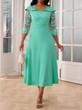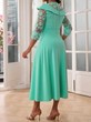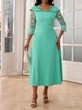 Elegant Women'S Lace Dress - Blue Floral Pattern, Short Sleeve, Crew Neck, Knee-Length with Waistband and Hem Detail, Fashionable and Comfortable for All Seasons