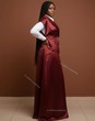 Elevate your wardrobe with this stunning two-piece set featuring a luxurious sleeveless satin maxi dress in a rich, deep Maroon/Burgundy with a structured collar and front button detail. It's perfectly layered over a crisp, classic white long-sleeve collared shirt.