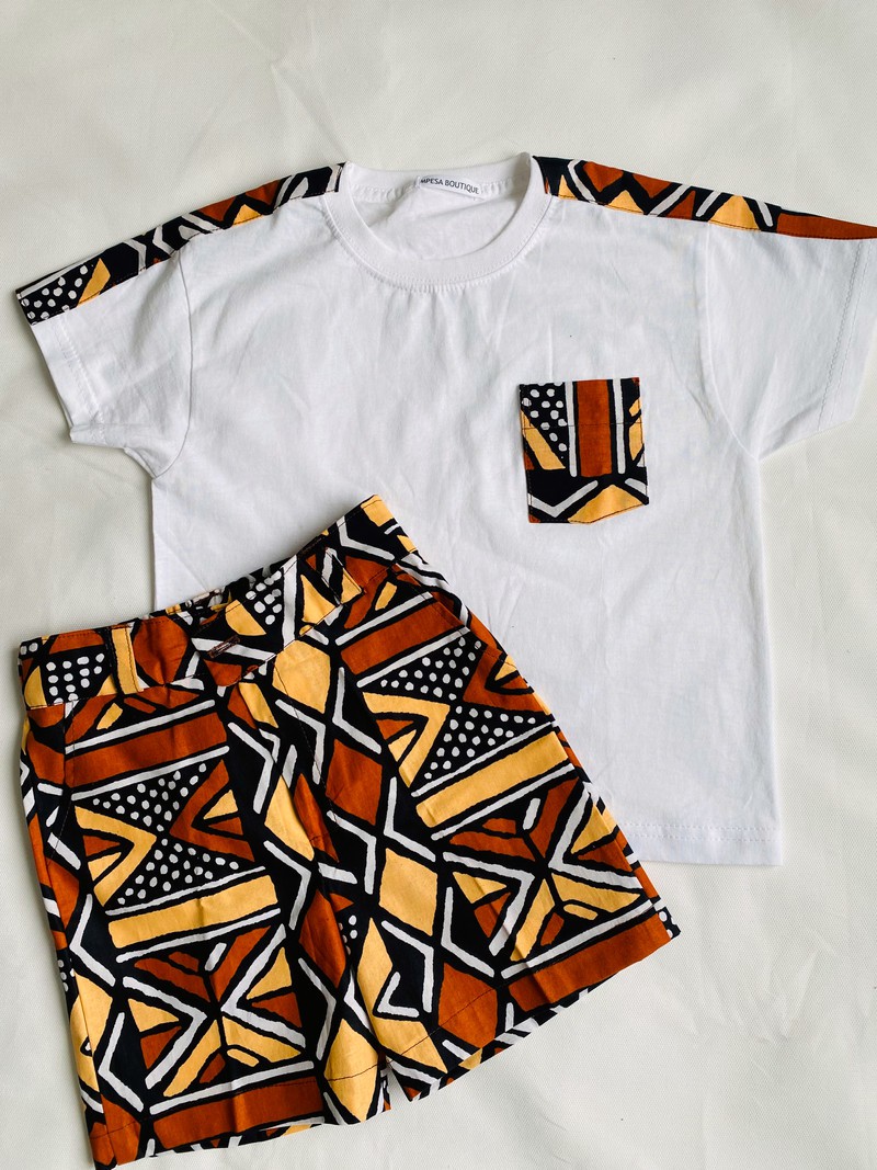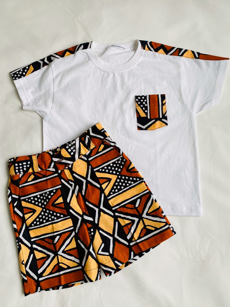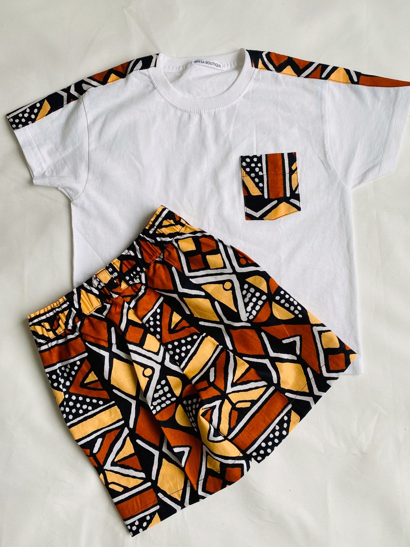 Craquez pour cet ensemble stylé et authentique pour vos garçons. Composé d’un bermuda en wax aux motifs colorés et d’un t-shirt en coton customisé avec des touches de wax assorties , cet ensemble est parfait pour un look moderne aux accents afro chic.