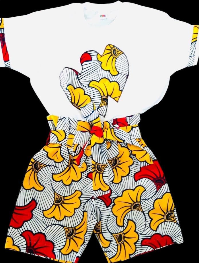 Le tissu à fleur de mariage est très tendance en ce moment, et il donne un style chic à cet ensemble mix imprimé pour le bonheur de vos fillettes. Le short est en taille haute à nouer avec élastique sur le côté, ouverture à l'avant avec une fermeture éclaire pour le confort de vos princesses. Le t-shirt est en coton 100% et disponible dans toutes les tailles enfants. Conseil d'entretien : Lavage en main de préférence ou en machine à 30 degrés.