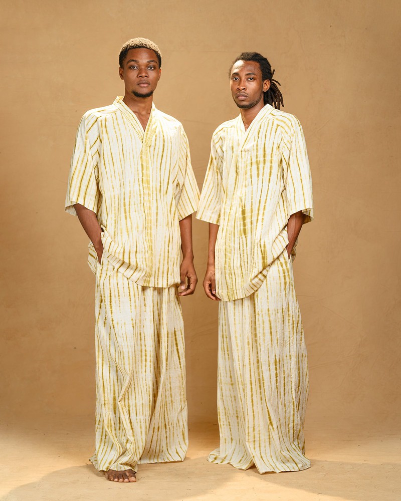 Ensemble pantalon grand large et ample avec tunique coupe ample et col façon kimono. Ensemble fait dans un tissu 100% coton doux et léger.