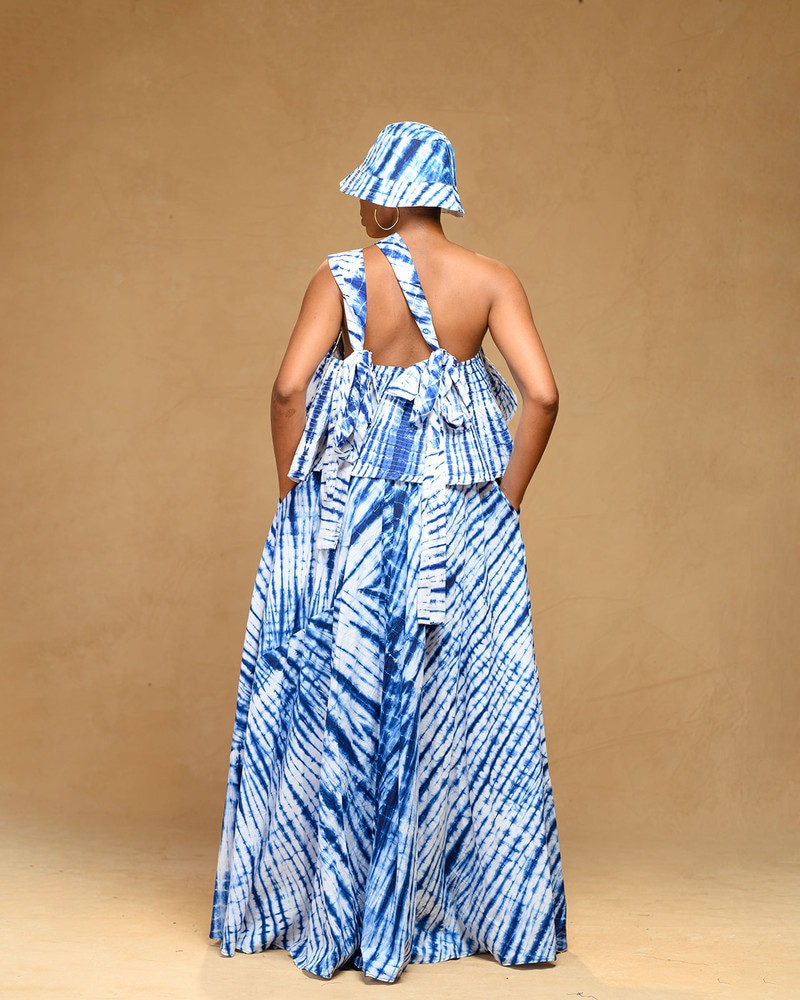 Ensemble top en panneau ovale à bretelles versatile et jupe maxi ovale muni de poches.
