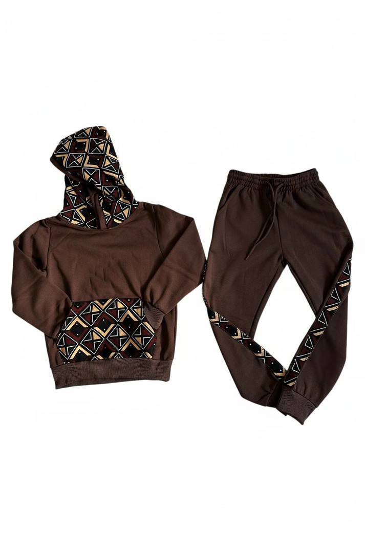 Entre chaleur et originalité, cet ensemble afro marron fait main se distingue pour son équilibre parfait entre confort et éthique du design. Les finirons en wax africain ajoutent du caractère et une touche artisanale unique à chaque tenue. Détail du produit : Coloris principal : marron chaud et naturel Composition jogging : 65% coton et 35% polyester Détail wax : 100% coton - capuche , poches , et pantalon. Fabrication artisanale : fait main avec passion Mixte : unisexe idéal pour garçons et filles Facile d'entretien et résistant.