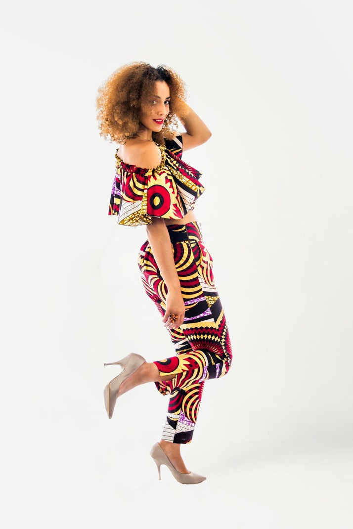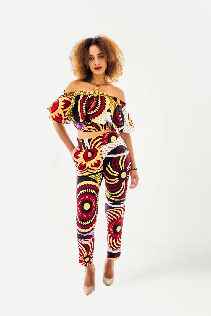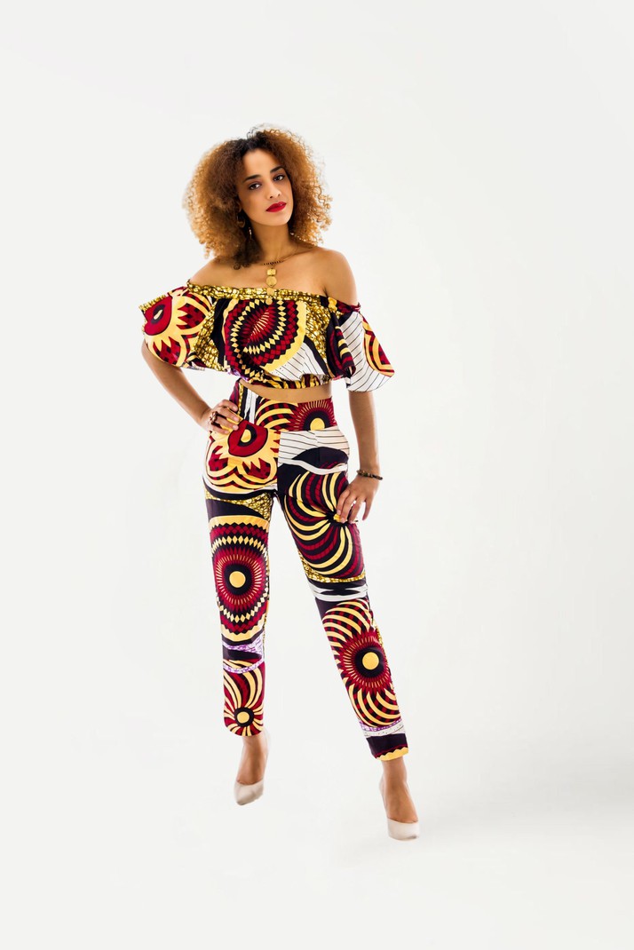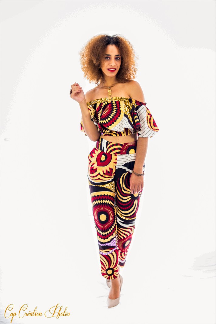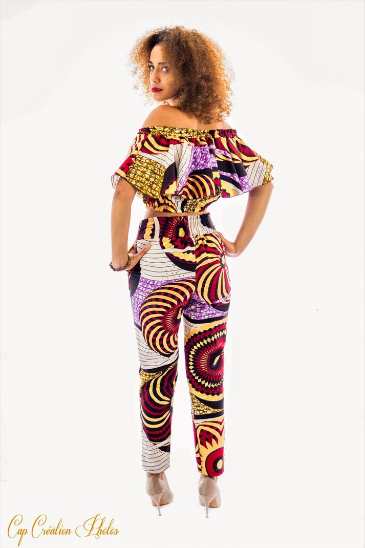 Allure chic et élégante assurée avec cet ensemble pantalon taille haute qui allonge la silhouette. Le top bustier est fumé au dos. Avec une fermeture sur le coté pour faciliter l'enfilage. Une poche et un zip sur chaque côté du pantalon slim à pli. Craquez et faites sensation ! Matière : 100% coton wax Idéale pour vos sorties légères ou habillées, vous ne passerez pas inaperçue. peut être vendu séparément