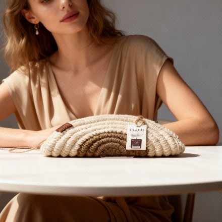 🍎 Sac Goffa Half Moon blanc – Édition artisanale BHANDI x The Marocain Vibrations Crochet point V 7 mm | Coton ivoirien & jute bangladaise | Fabriqué main au Maroc ✨ L'essence du crochet revisité en demi-lune Le sac Goffa Half Moon est un modèle 100 % crochet dont la forme en demi-lune apporte une allure douce, contemporaine et naturellement élégante. Conçu à la main avec un point en V au crochet n°7, il allie relief, finesse et légèreté. Imaginé par Kouatar, fondatrice de BHANDI, en co-création avec The Marocain Vibrations, ce modèle réinvente le sac au crochet en lui donnant une silhouette épurée et moderne. 📀 Dimensions & accessoires (approximatives – chaque pièce étant unique) - Sac : ~30 × 15 cm (≈ 11.8 × 5.9 in), forme demi-lune - Pochette intérieure : ~24 × 14 cm (≈ 9.4 × 5.5 in) - 2 cordons : ~17 cm (≈ 6.7 in) pour port main ou attache pochette - 1 bandoulière : en chaîne gourmette métallique : ~100 cm (≈ 39,4 in.) - Emballage : sac écrin en coton 🧵 Chaque ensemble nécessite entre 9 et 11 heures de travail artisanal. De légères irrégularités peuvent apparaître, signature d'une fabrication entièrement manuelle. ✅ Caractéristiques clés - Technique : 100 % crochet (point en V) - Crochet utilisé : n°7 - Matières : • Coton naturel • Jute végétal • Assemblage au Maroc - Temps de fabrication : 9 à 11 heures - Couleurs : blanc & jute naturel - Style : minimaliste, bohème chic, contemporain - Port modulable : main, épaule ou croisé - Accessoires inclus : bandoulière, cordons, pochette et écrin 🌿 Pourquoi l'adopter ? - Une pièce 100 % artisanale, façonnée avec soin - Une forme demi-lune moderne et ultra-tendance - S'adapte à toutes les silhouettes et toutes les tenues - Une collaboration authentique et inspirée - Un sac qui devient une véritable signature textile 🧼 Entretien - Lavage à la main à froid - Séchage à plat, à l'ombre - Ne pas tordre ni repasser - Éviter le contact avec des surfaces rugueuses 📌 Façonnée à la main dans l'harmonie des gestes et des formes, cette pièce incarne une féminité en mouvement, délicate, cyclique et profondément ancrée. BHA_GOF_HALFMOH_V07