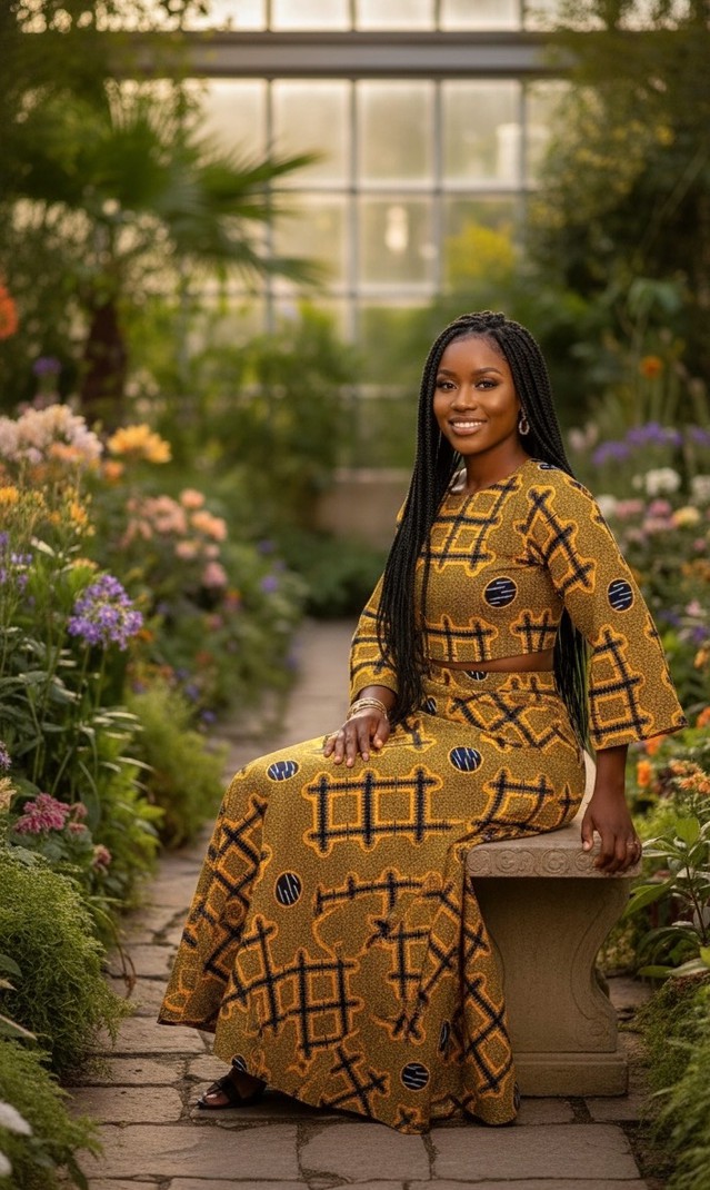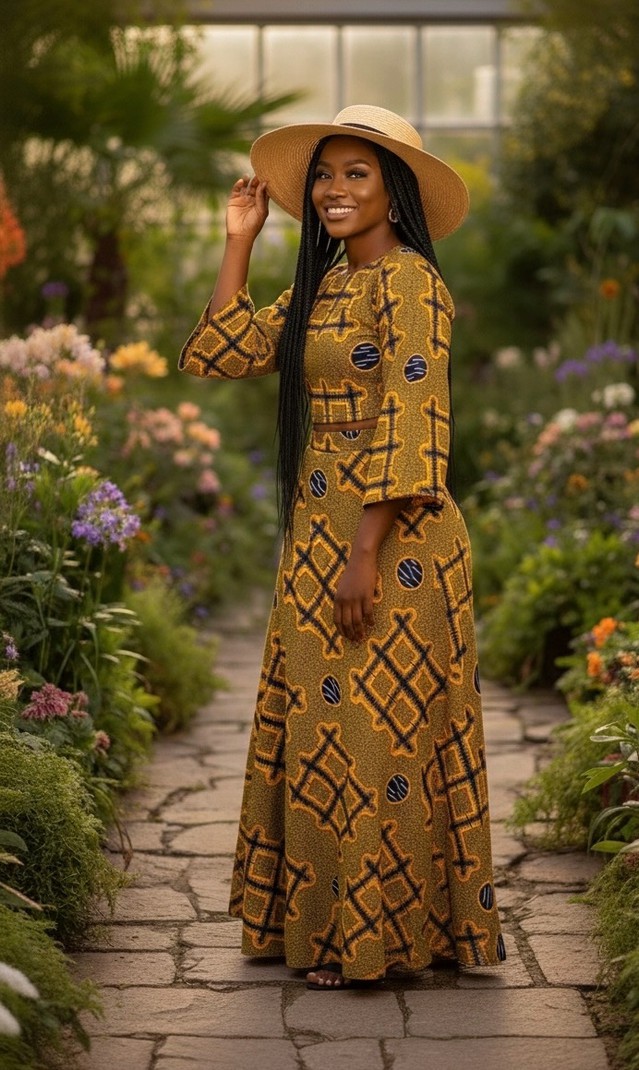 Cette robe longue en tissu wax allie prestance et féminité naturelle. La coupe du haut cintrée à la taille sublime la silhouette, tandis que les manches trois-quarts et la jupe évasée apportent aisance et fluidité. Idéale pour une occasion spéciale ou pour affirmer votre style au quotidien, la robe incarne la femme à la fois douce, rayonnante et souveraine. Détails : • Tissu : 100 % coton wax premium • Manches : trois-quarts évasées • Coupe : cintrée à la taille, jupe ample et fluide • Fermeture : zip discret au dos • Entretien : lavage doux à la main ou en machine à froid