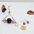 Ensemble Bracelet ajustable et Boucles d'oreilles en perles naturelles Rose.